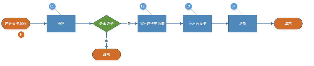 1、会员在前台(水吧)填写《会员卡退卡申请表》,并由会籍主管和店长共同签字确认。