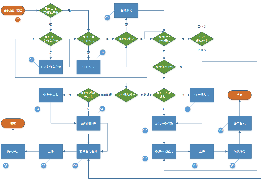 Q、会员健身流程图